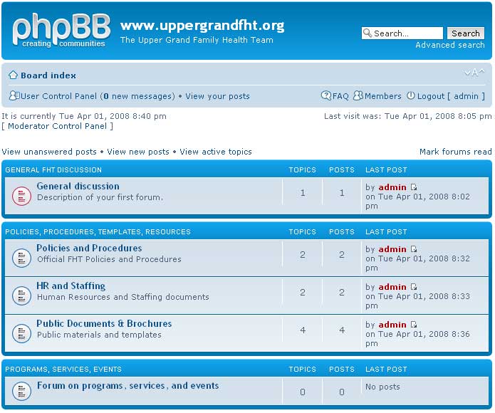 The FHT website team portal has extensive facilities for storing documents and materials. Organise folders according to your specific needs. You can upload documents (.doc .xls .ppt .pdf etc) together with comments, and inside the discussion forum scheme other staff emember can add posts with comments and recommendations.
